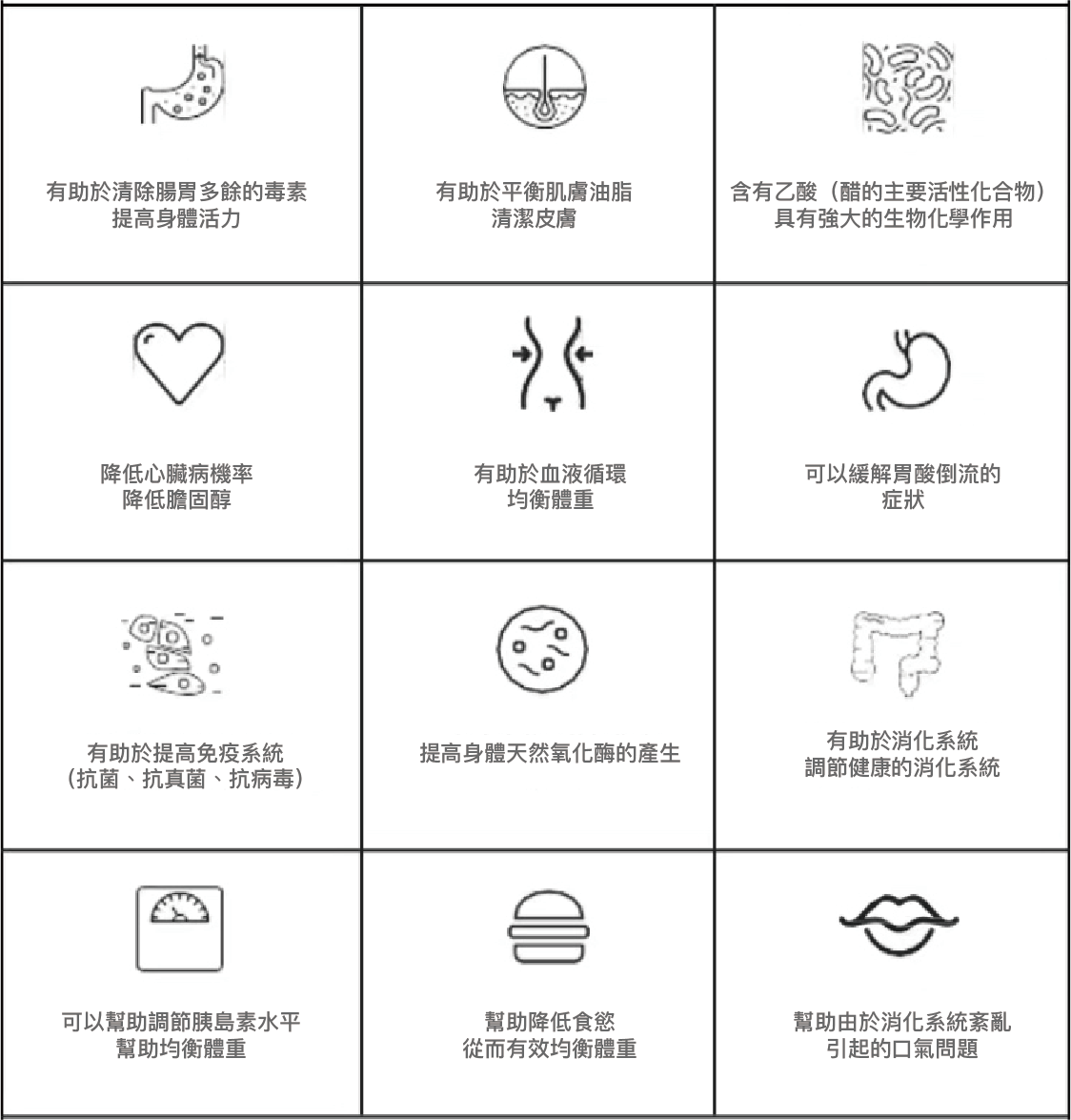 - 由於天然酸和酶,有助於消除對糖的渴望並增加飽腹感