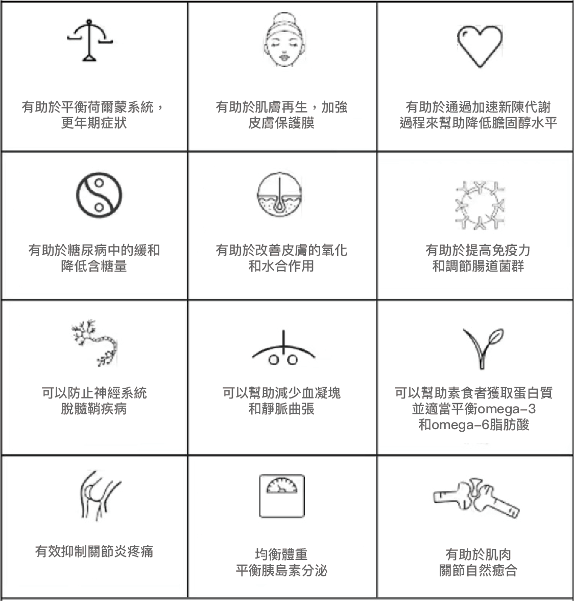 ☑可以幫助素食者獲取蛋白質,並適當平衡omega-3和omega-6脂肪酸